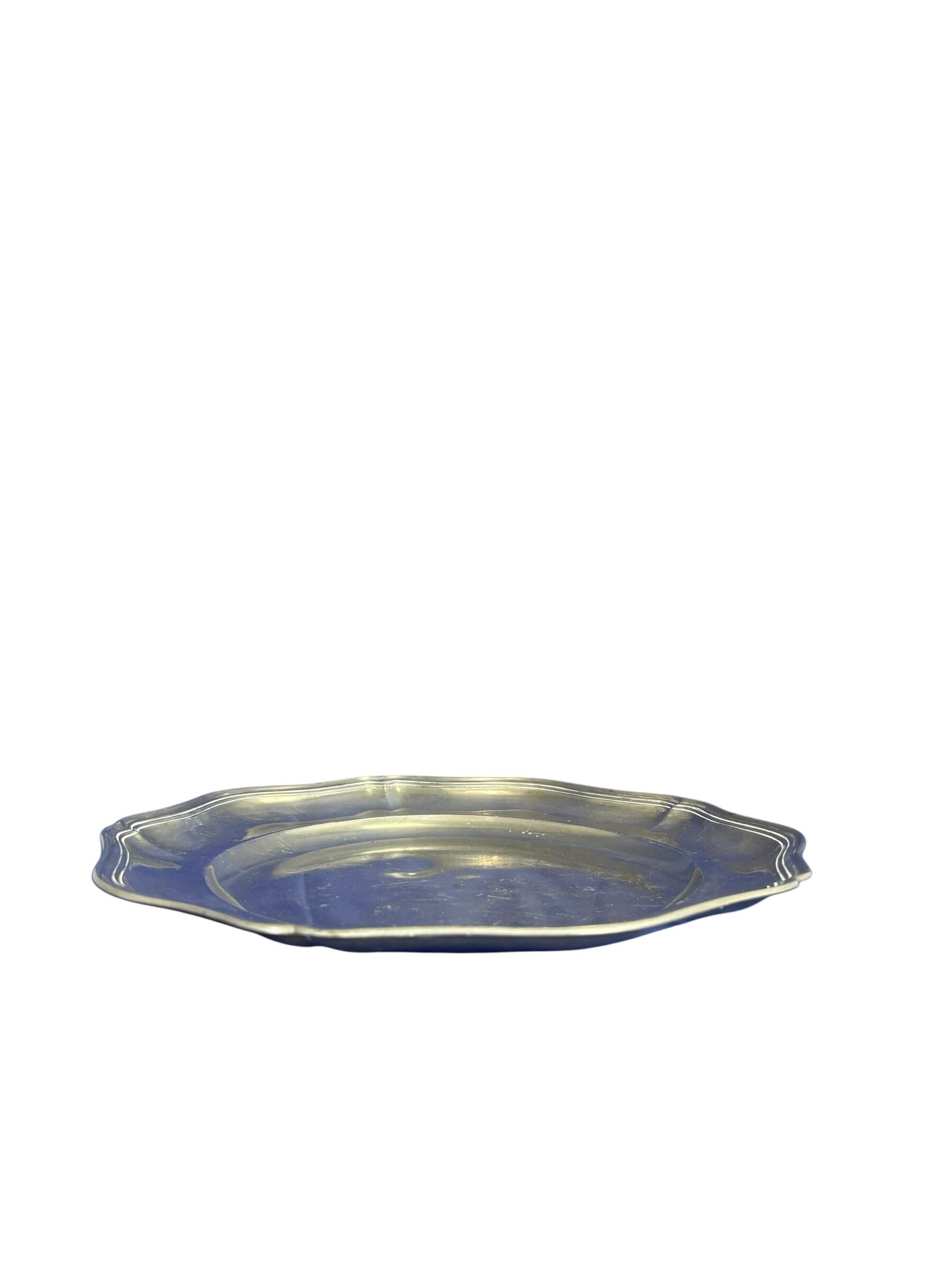 波打つようなスカラップリムは、ピューターでは珍しい装飾デザインで、